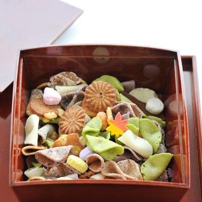 色とりどりの落ち葉や木の実が風に吹き寄せられた様に細工菓子、お煎餅、干菓子で鮮やかに詰め合わせたのが「吹き寄せ」です。